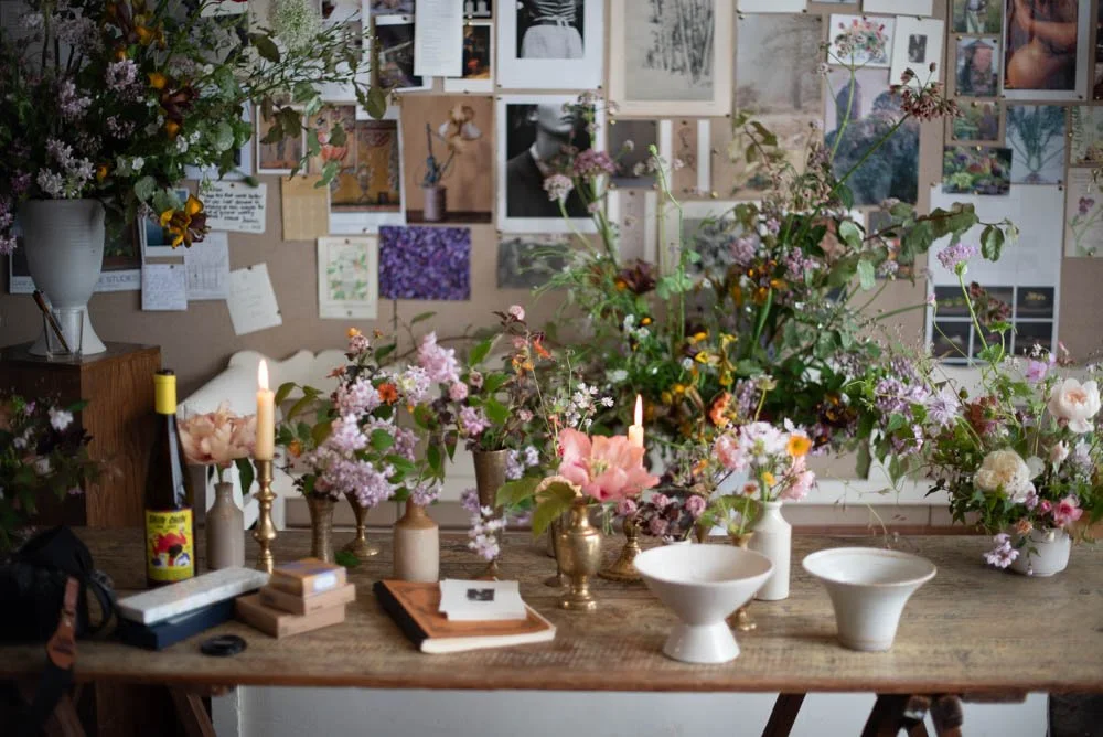 We welcome flower arrangers from all over the world whether professional, amateur or aspiring - owners and employees of flower shops and studios, wedding designers and flower farmers. You certainly don’t have to be a florist to come to our School. Previous students have included lawyers and doctors, cooks and artists, gardeners, photographers, scientists, psychologists. Some have gone on to study garden design, to incorporate naturalistic design in hotels and restaurants or to photograph flowers. Many have been home arrangers for whom time with flowers is a personal practice. There is a whole spectrum of interest and many layers to peel back. We believe that learning about flowers and plants has the power to affect momentous change in our lives. How we think about the world around us, what we notice, the way we eat, how we shop and consume, how we garden and decorate, how we dispose of things, how we feel about ourselves and others and the world at large. How we deal with stress and even how we reconcile our own mortality.