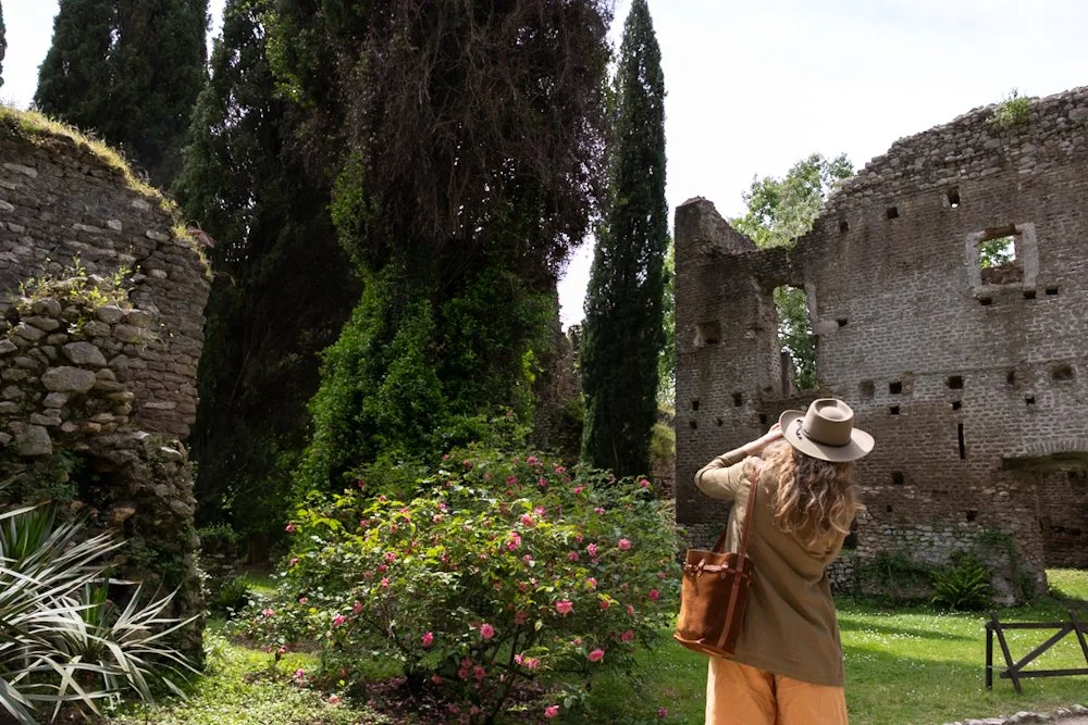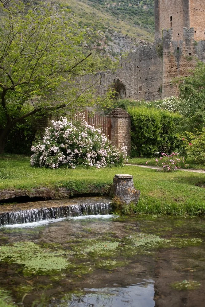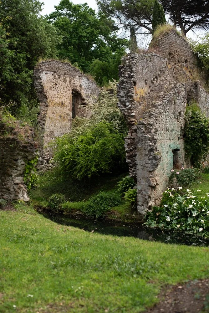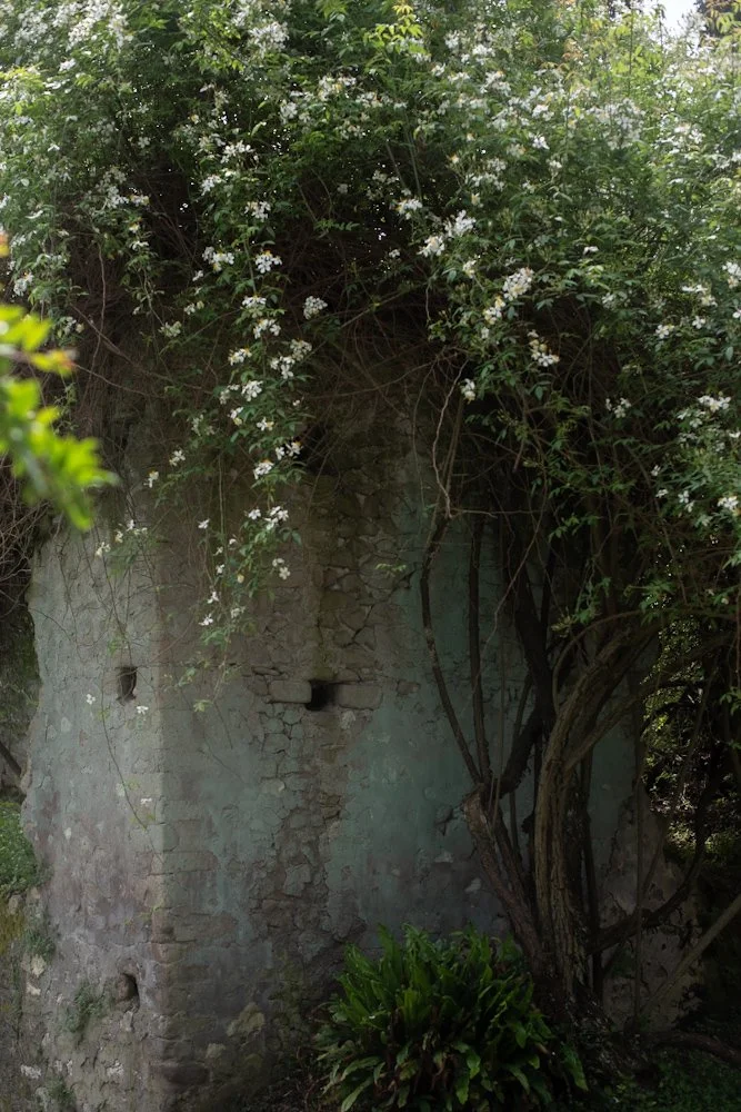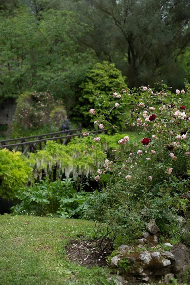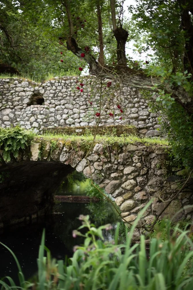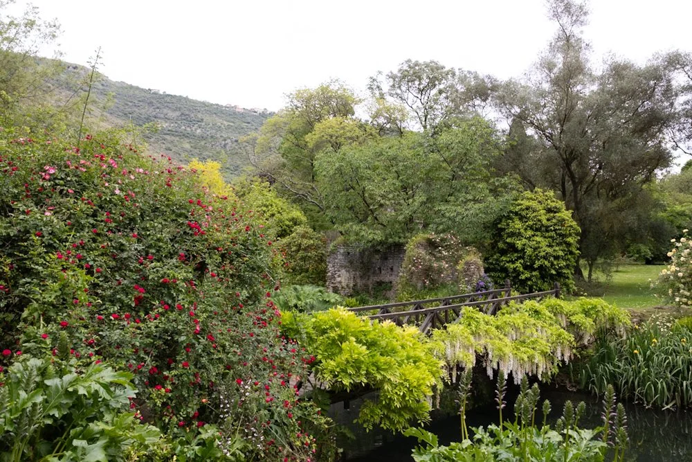 I first heard of Ninfa over a decade ago when I visited the gardens of Aberglasney in Carmarthenshire; it was the inspiration behind the ‘Ninfarium’ created in the ruins of the original mansion. I looked it up. Ever since it has been flitting in and out of my consciousness, a place among many, in a list among many. So many places to try to get to in this life. When I heard the name it would conjure certain images. A medieval bridge festooned with wisteria trailing over a clear river thick with aquatic plant-life. Crumbling stone ruins, pink and dusty, interwoven with climbing roses. Arcadian views. Faded frescoes in the shadows of the mountains. Water - both falling and slow moving - he mirrored surface of it creating a heightened sense of the unreal as if the rippling reflection could be passed through, might lead to another realm. Jess and I have often said to eachother over the years – someday we’ll get to Ninfa. Well, we finally did!