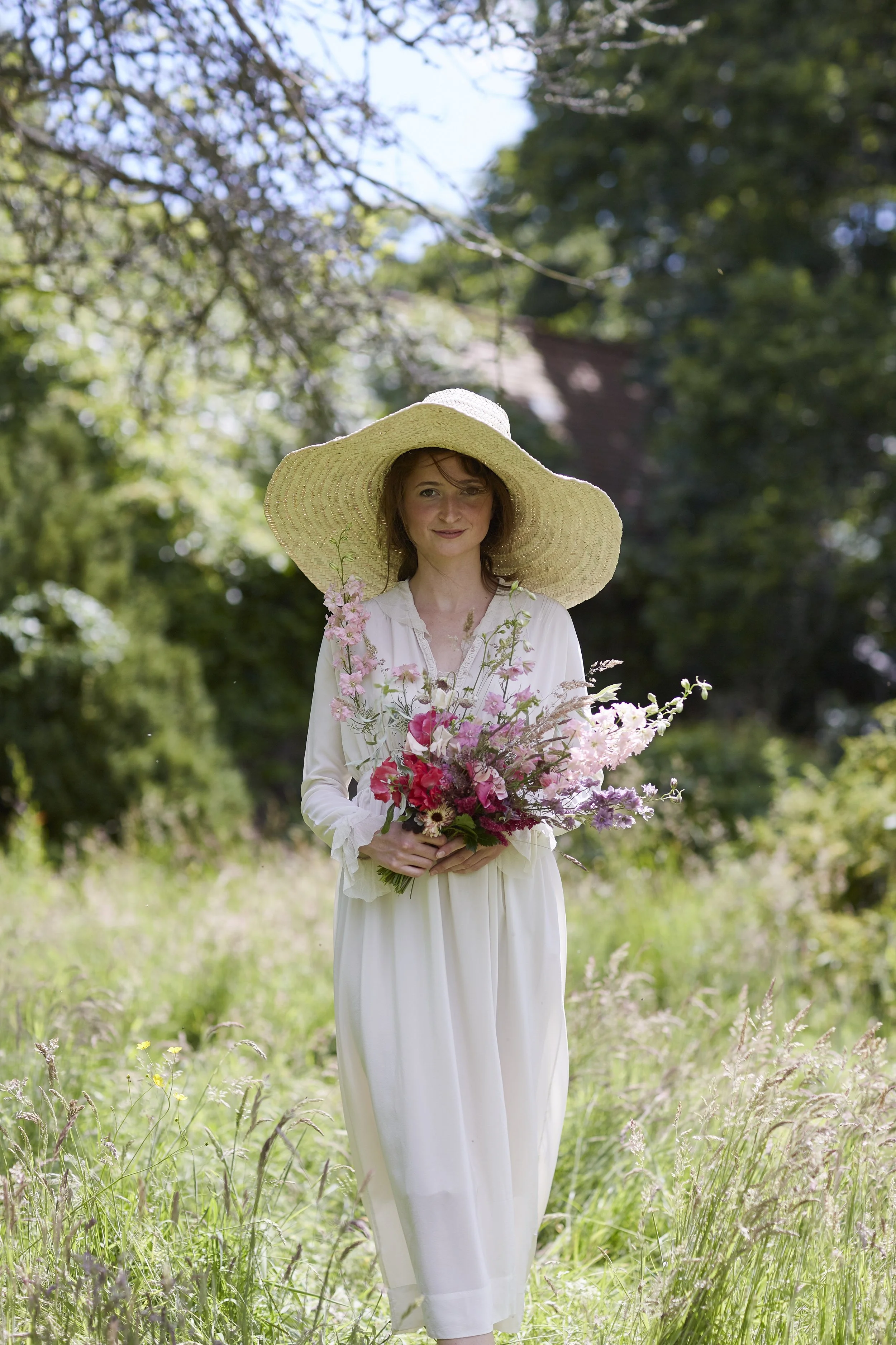 Down at the farm we are at full tilt in June, the rose garden and sweet peas now in prolific flower. In the tunnels we’ve been cutting from a statuesque crop of candy pink and lavender delphinium, many varieties of calendula, Californian poppies in shades of buttercream, streaky pink, orange and red, nigella, clarkia, forget-me-nots and agrostemma. Outside the perennial beds have yielded geums, wallflowers, heuchera, geraniums, campanula, achillea and ferns. In the large raised bed, rows of phlox are flowering and behind them, zinnias, cosmos and rudbeckia are fast on their heels, with the dahlia beds getting bushier by the day.