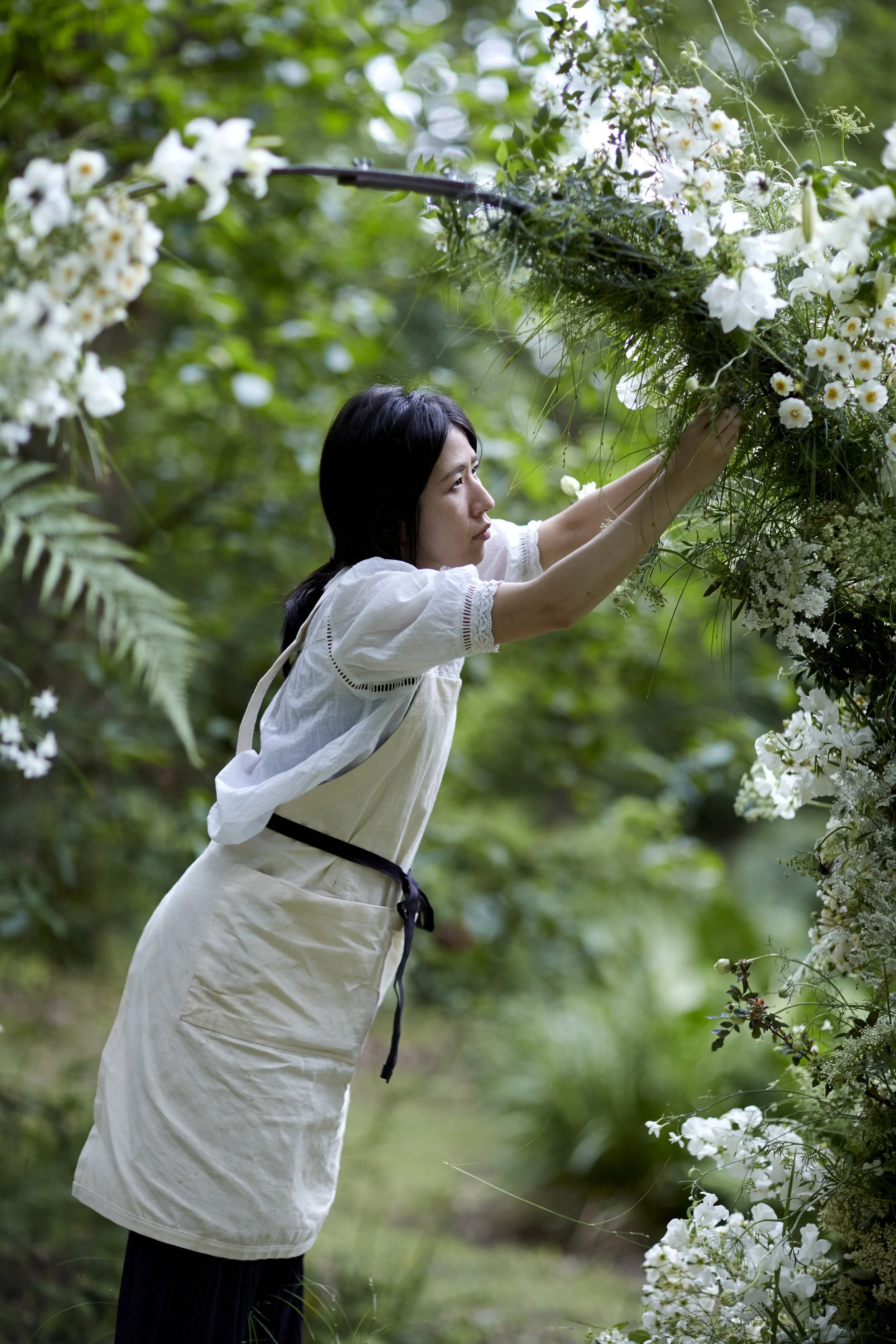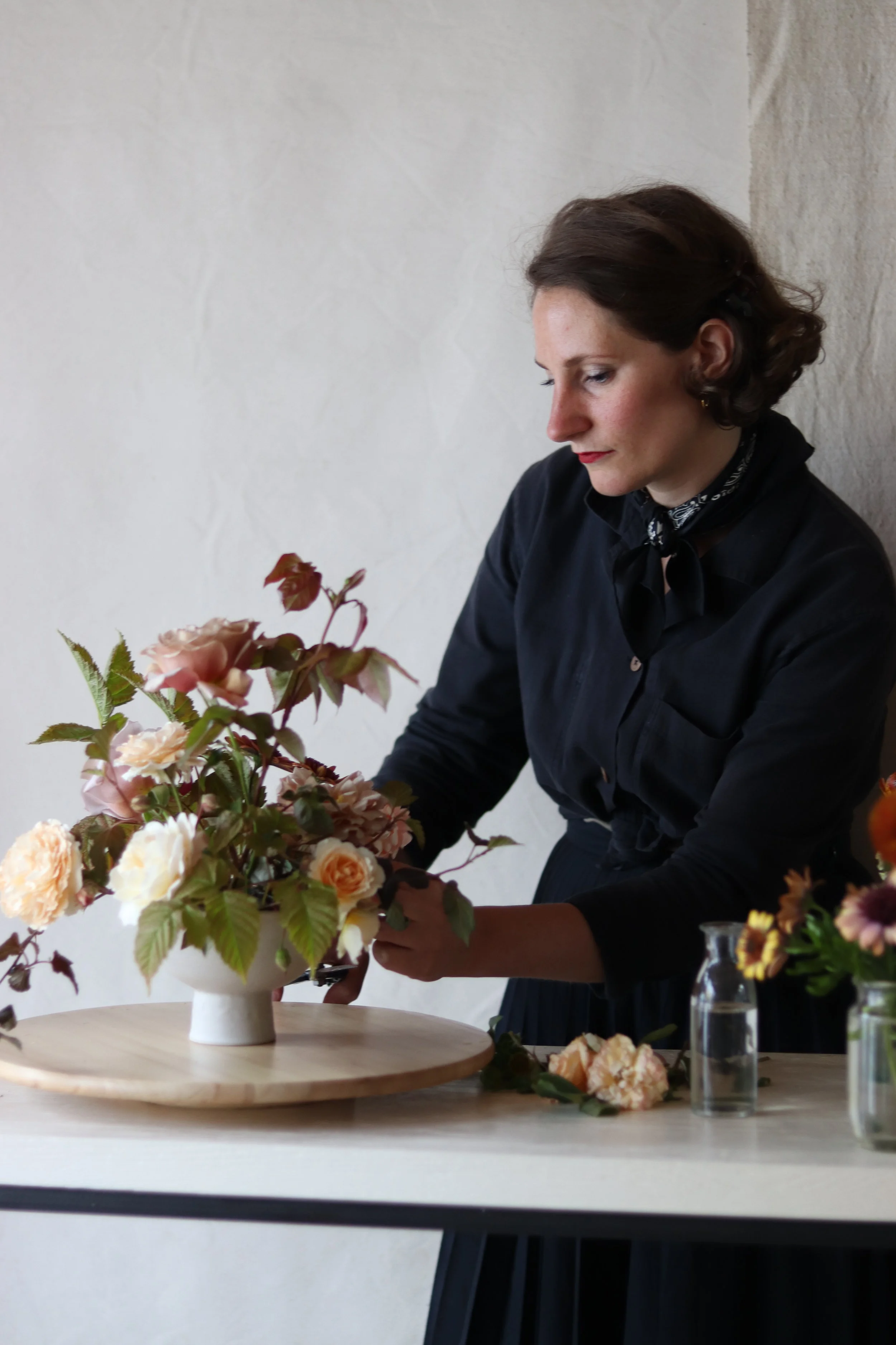 The studio is very much the home of the business now, bedded in, comfortably accommodating our workload and somehow expanding and contracting with the size of each project and the team we have in working on it. Yukiko has taken responsibility for the daily running of the space and keeps it spotlessly clean and organised, efficiently turning it around between each event so we’re ready for the next. The place has an uncanny way of being just what you need at any given time; a workshop of whirling activity but also a leafy, cool and calm haven in the noise of the city. My favourite time there is in the early morning, drawing back the shutter door and the sun streaming through the back window, drinking a coffee and answering emails under the silver birch in the garden with a long day ahead. Or later, once the flower work is done and the shadows are lengthening across the floor, rows of arrangements lined up to go out the next day, and a couple of bees buzzing happily between them gorging on nectar.