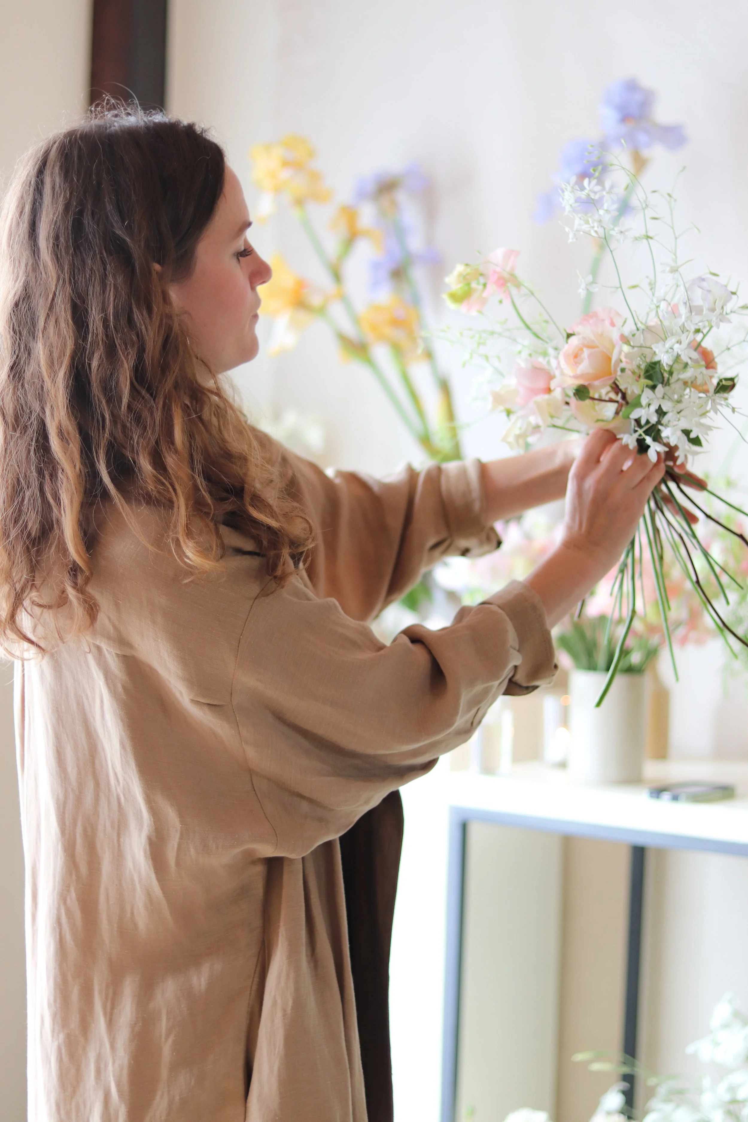 Our June Masterclass proved to be another magic three days of creativity and floral collaboration, with students from Australia, the US, Korea, Hong Kong and the UK. During these workshops we place great emphasis on seasonality and using locally-grown materials, thoughtful sourcing and foraging but also design, careful editing and pushing the boundaries of working with ‘colour palettes’. It is so interesting to discuss and compare the differences in the industry in different parts of the world and hear people’s experiences in starting their own small businesses. No matter the distance travelled everyone seems to come together with the same goal and the same questions; how to design and supply flowers for events in a sustainable, mindful way, how to break into and then make a living in an industry still largely dominated by wasteful methods, rigid expectations and unnatural or stiff design templates, how to grow or source flowers that are softer, more beautiful, unusual and difficult to find from large scale wholesalers. In group discussions each morning we cover everything from honing a philosophy to live and work by, colour pairings, pricing, green waste management and wedding logistics - it amazes me how much we can cover in three days with our heads together, and at each Masterclass someone always brings a new topic to the table to think about.