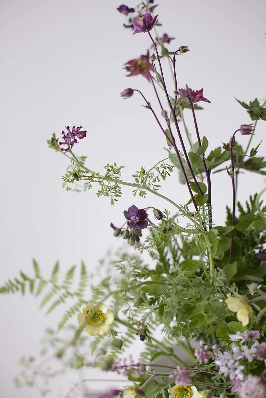 The garden continues to feed our work at the studio. Both literally and metaphorically, a flow of materials, gaining in quantity and variety by the week, and the propulsion of its natural energy carrying us along with it further into the year. Without the flurry and hustle of our usual schedule, this month has allowed us a unique and deep immersion in using our plants to fuel our design work and enabled us to dig deeper into the overlap of horticulture and flower arrangement. The collaborative relationship between our studio and the garden, and the tension and beauty this can create has become a total obsession and it has been a luxury to spend several weeks focussing on this alone.