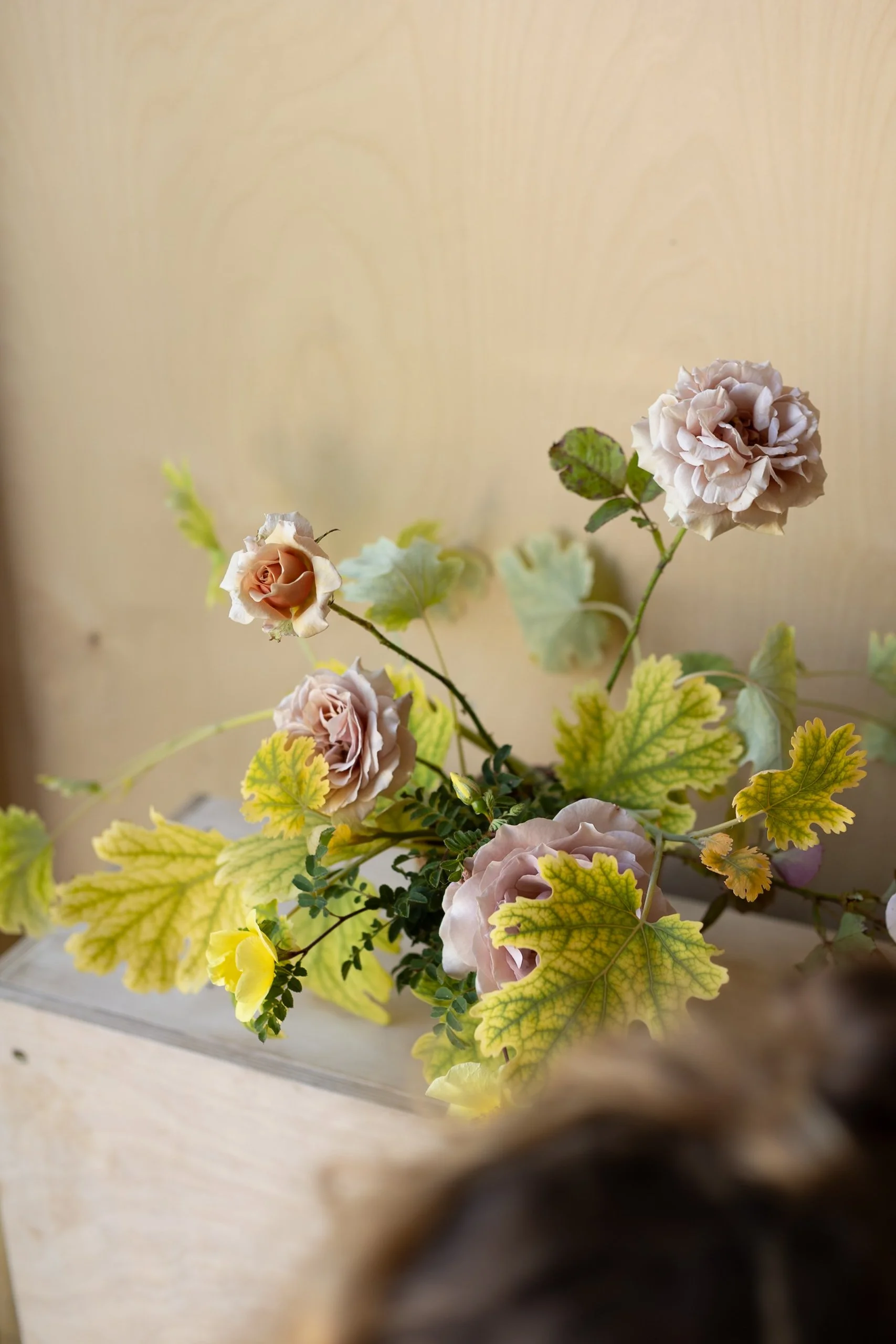 Sure, there is the aesthetic pleasure of the flowers - white and the palest pink, which unfold from silvery buds in early summer and look a little like a tiny, creased version of the wild dog rose (Rosa canina). The resemblance makes sense, since the Rubus genus is a member of the rose family (Rosaceae). The glossy berries gradually darken, from a vibrant lime green to khaki, through gold and dusky red (at this time of the year) to the deepest purple-black. The leaves are exquisite, arranged alternately along curving, thorned canes, paler to the underside, divided into multiple leaflets and often tinted maroon, pink or lime. There is its usefulness to consider, too. A natural barbed wire, it has been utilised for centuries as a way to delineate boundary lines. If you can abide the thorns it serves the flower arranger all year round, from bud to blossom to fruit and on into the winter months - I love a desiccated blackberry bramble early in the year, with the gilded autumn fruits still in evidence.