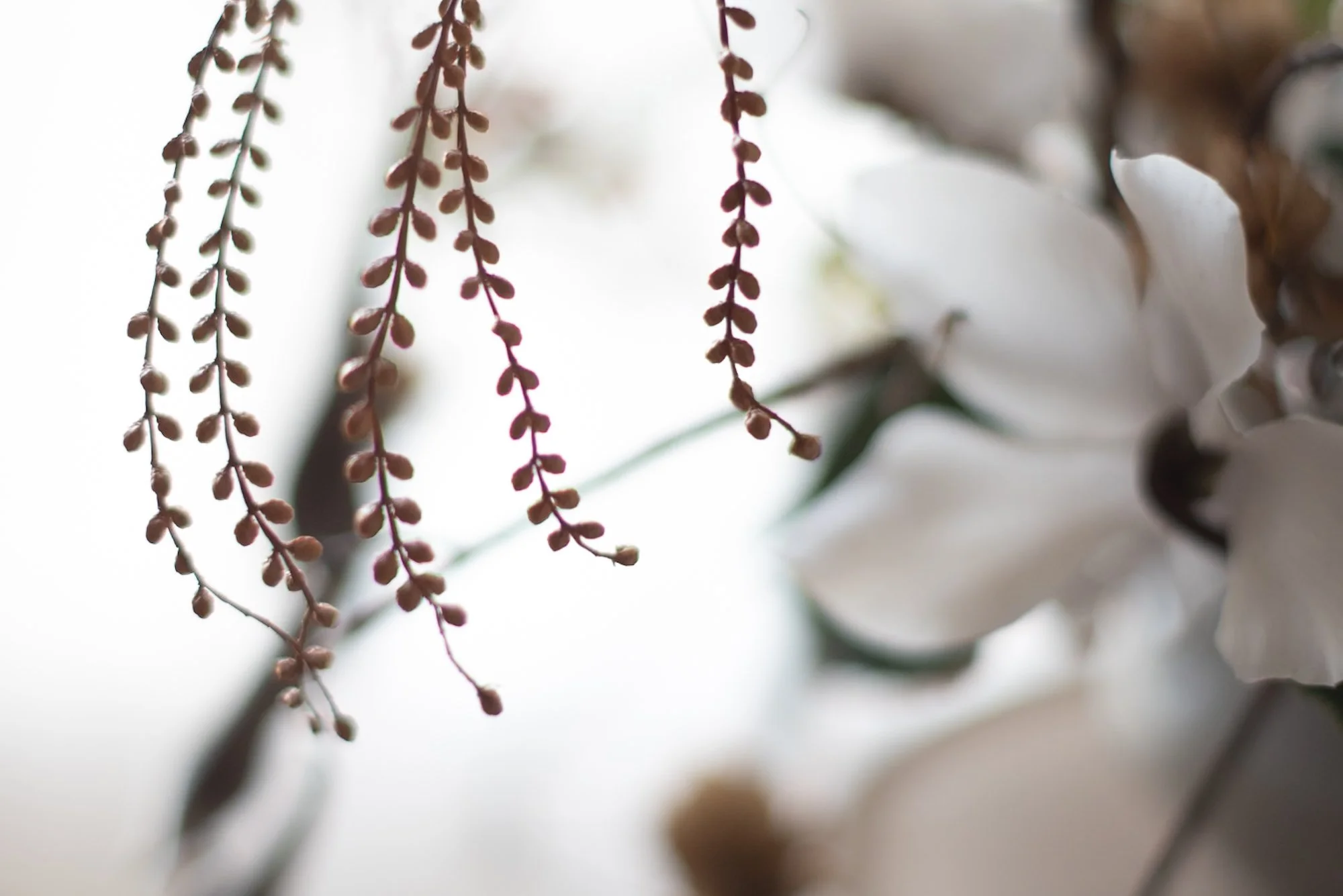 The first arrangement of the year - light and tentative with fine branches and vines and ice-white cyclamen