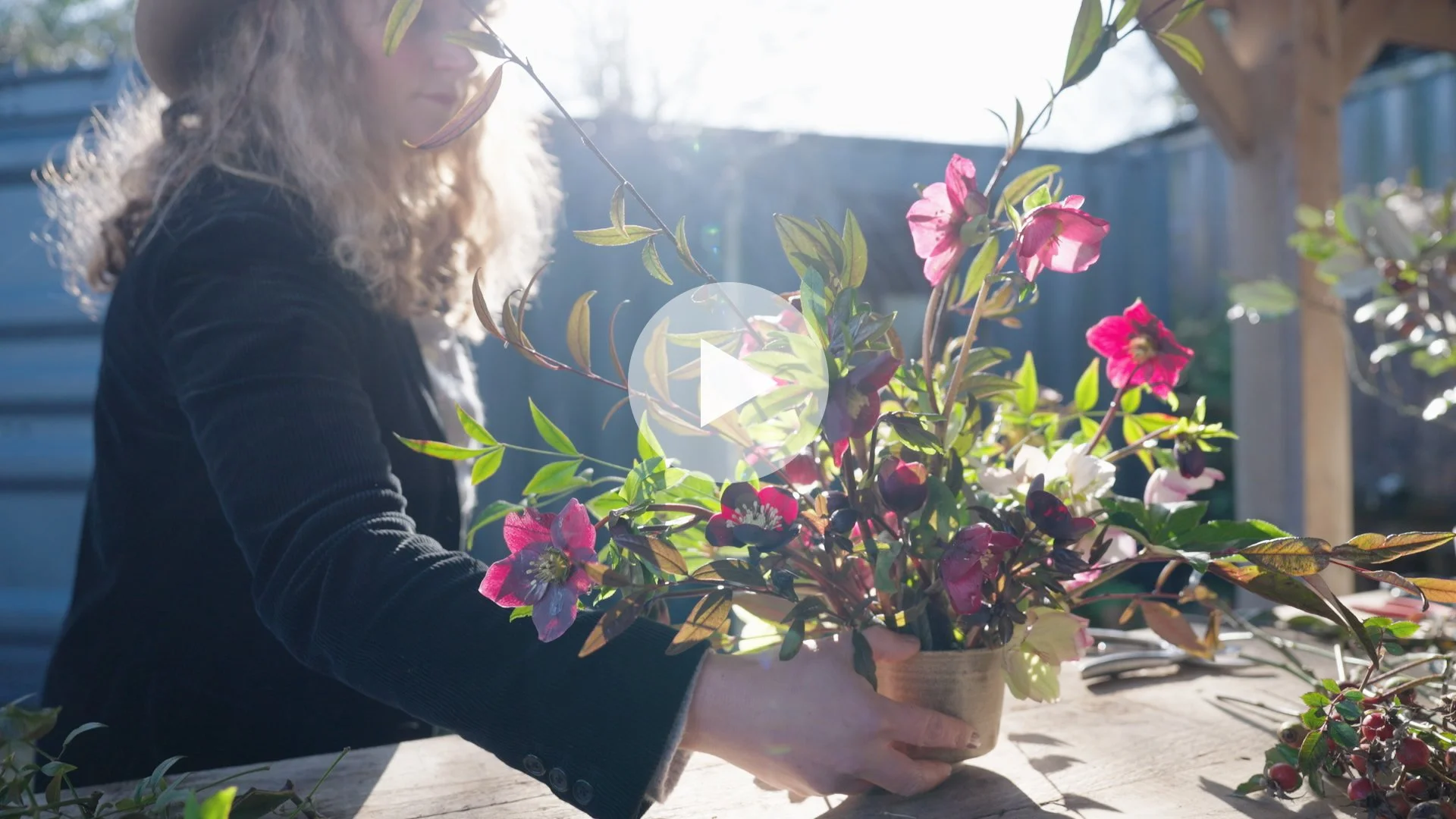 I continue working through the red and plum flowers shade by shade until I reach ‘Harvington Black’ which has the dusty look of black grapes. The snow roses have a robustly thick stem and large flowers that I would usually cut short but it seems a shame to waste such great stem length at this time of the year. Johnny has been busy pruning roses this week and saved me a generous bucket of hips - those of Rosa ‘Desdemona’ are like plump, rosy little apples, again with that slight smokiness to the colour, and the spherical forms go some way to balancing the weight of the hellebores. I add them liberally, taking the chubbiest clusters off short and gently nestling them between the Nandina and the flower heads and saving the finer stems and the cuter, more petite fruits for elevated, more prominent positions.